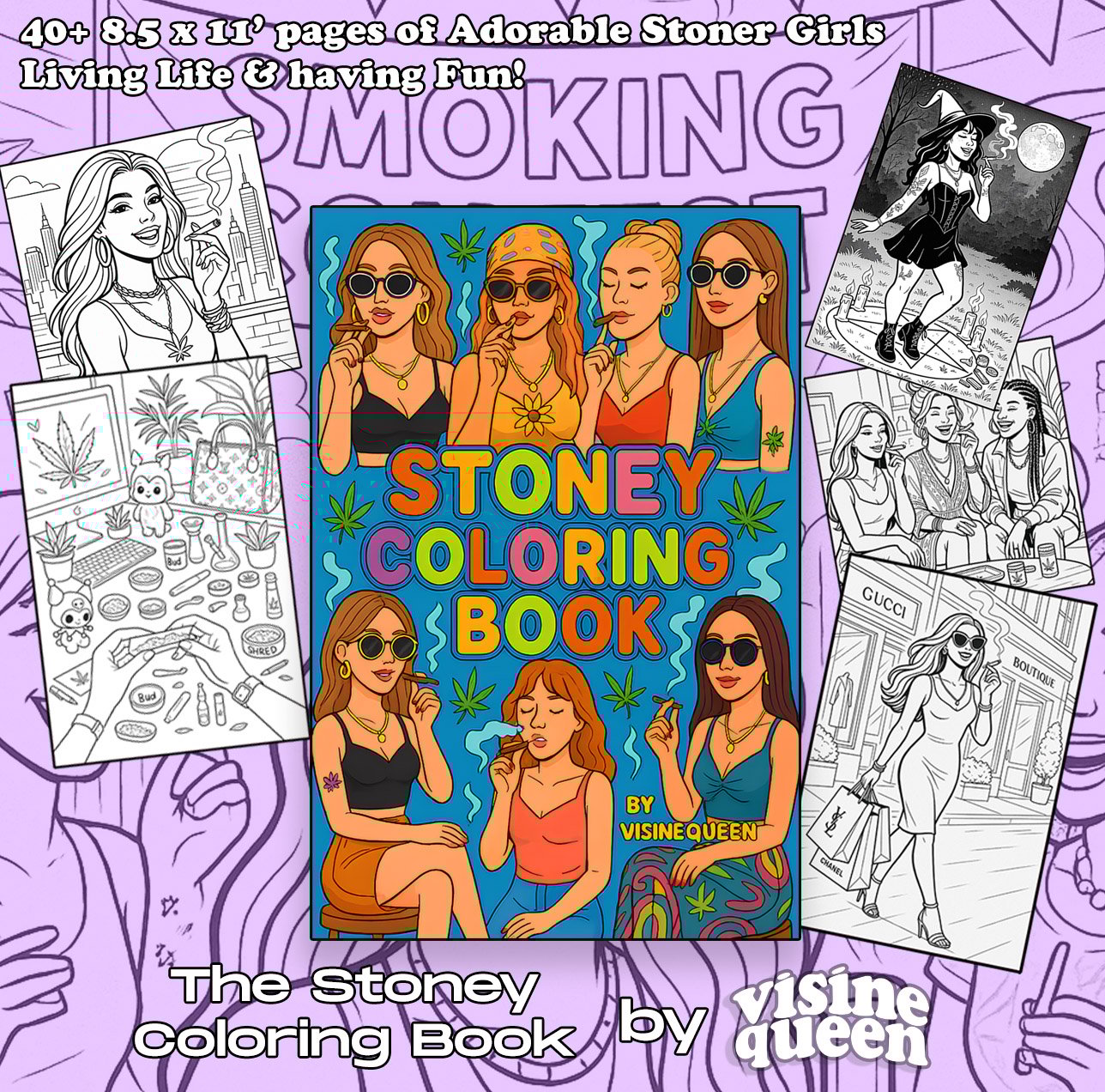 The Stoney Coloring Book by VisineQueen brings you 40+ pages of chic, cannabis-inspired illustrations—perfect for relaxing, getting creative, and enjoying your stoney vibes.